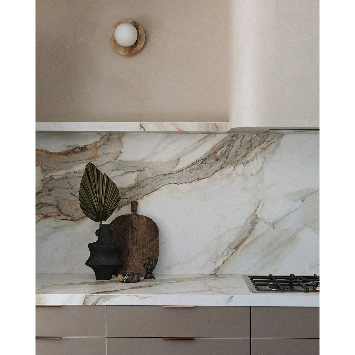 Whispered brown gradients resembling aged parchment - When illuminated, the stone transforms into a living installation â€?its organic imperfections become virtues, casting ethereal shadows that dance across your walls. The Krema’s minimalist frame intentionally recedes, allowing the onyx to command attention as both light source and sculptural centerpiece.
