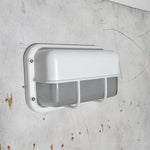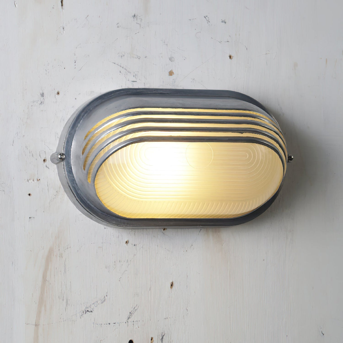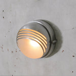 • Illuminate your outdoor space with the sophisticated Paugh Outdoor Wall Sconce. This fully enclosed bulkhead fixture features a sleek, nautical-inspired design that adds a touch of coastal elegance to any exterior. The sconce's flush-mount installation allows it to sit seamlessly against your wall, while the top brow accent and centered metal strip provide a modern and eye-catching aesthetic. Enjoy the soft, diffused light it emits, perfect for casting a warm glow on your patio, porch, or driveway.