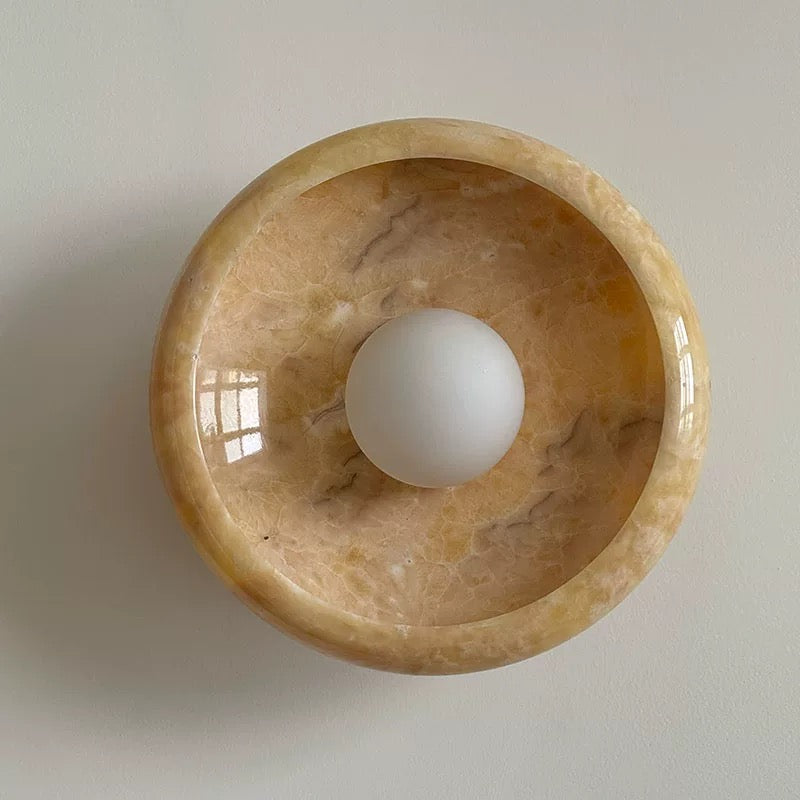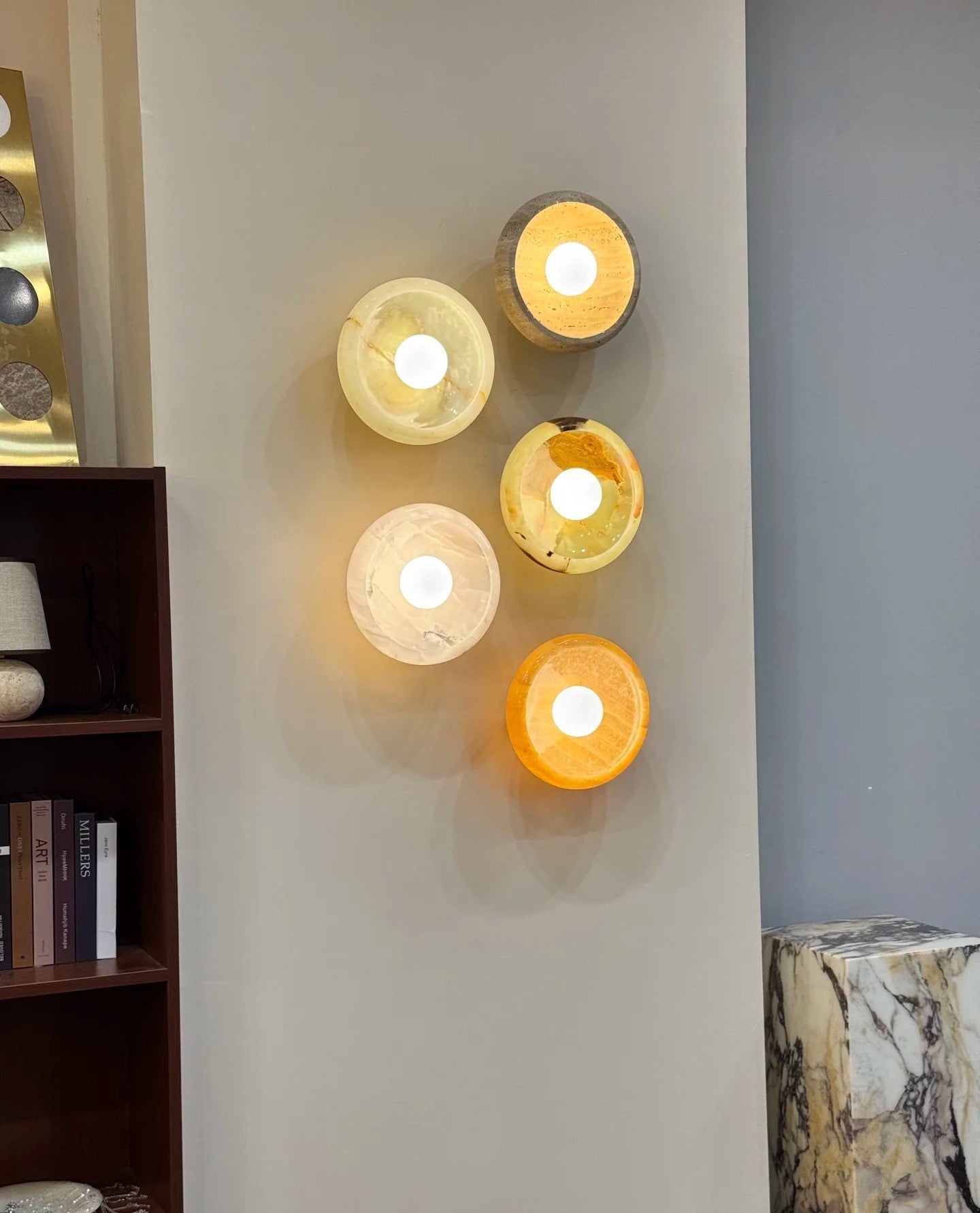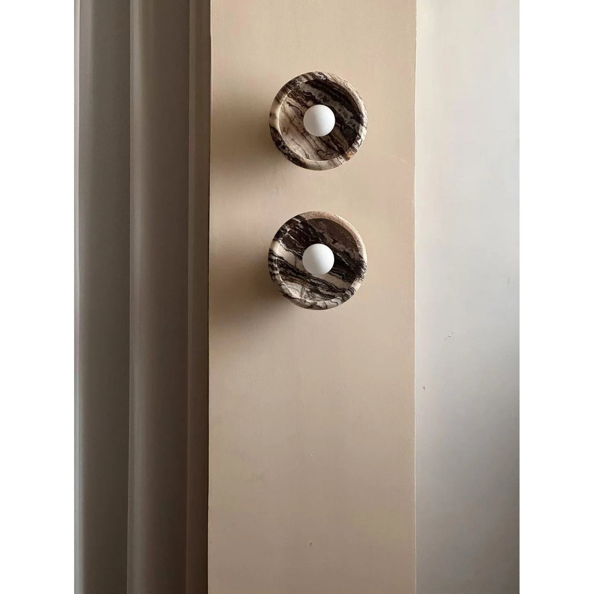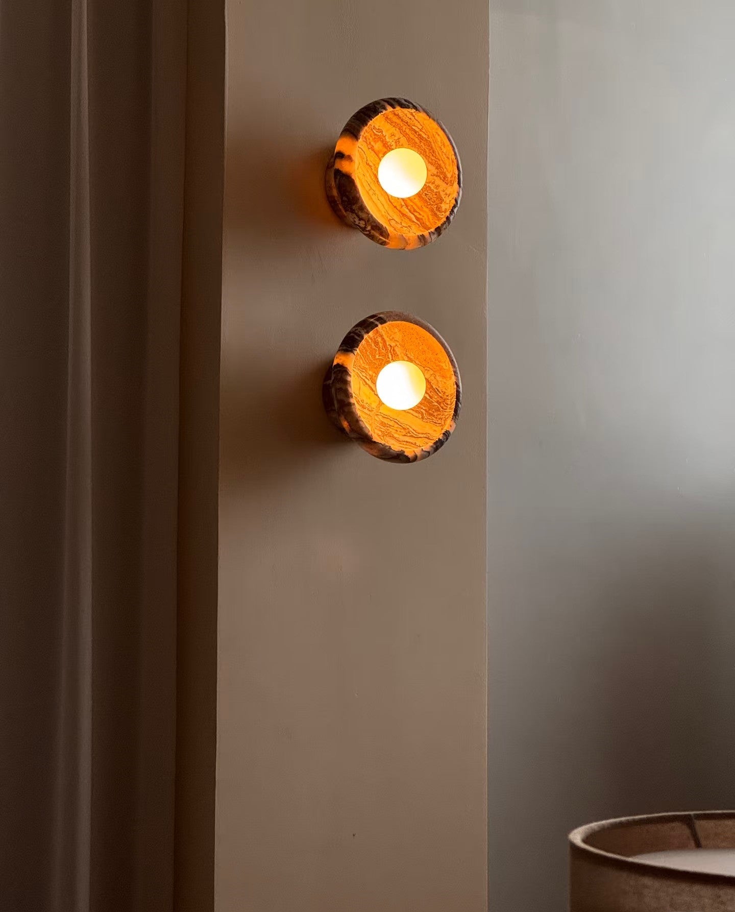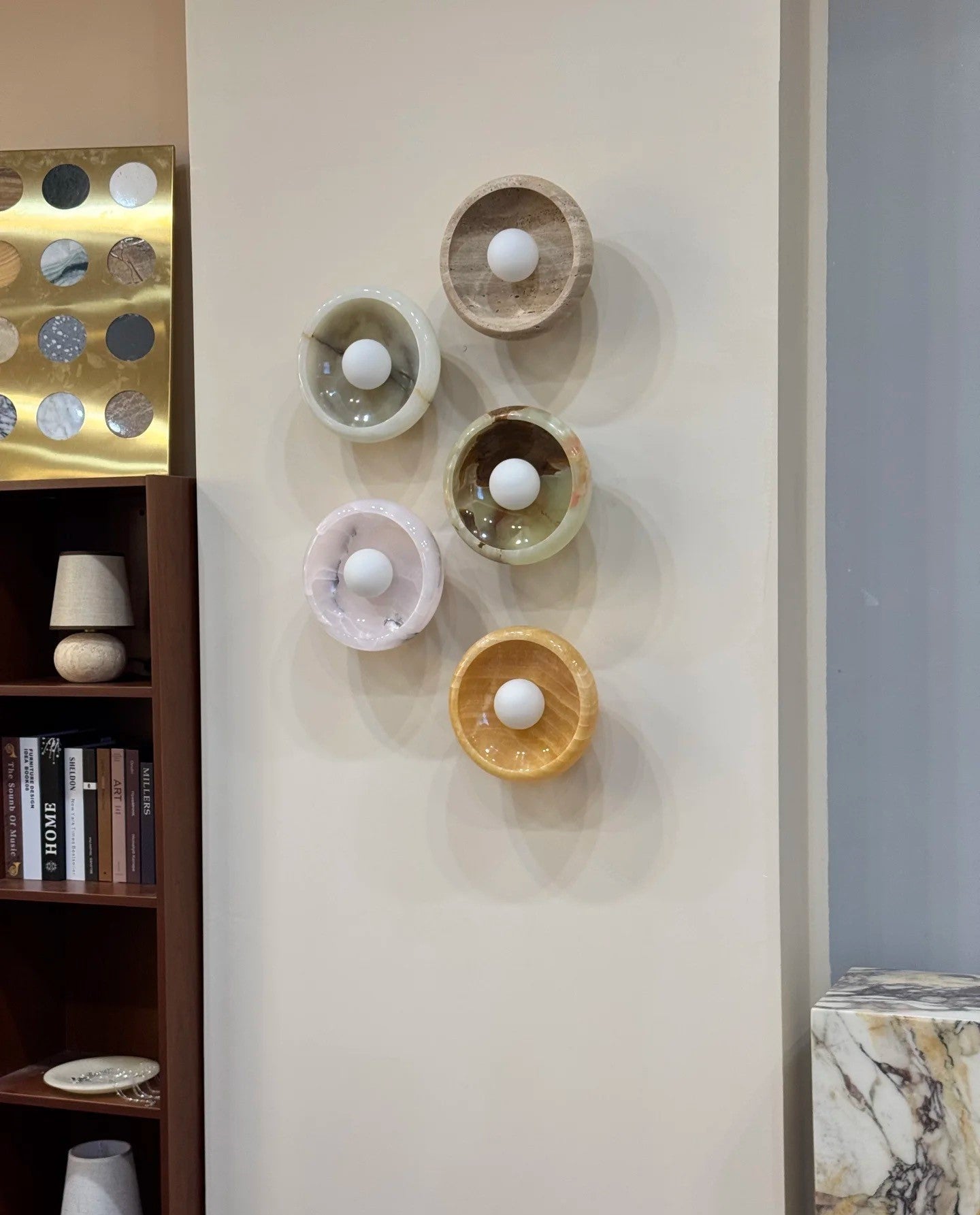 - Each piece is meticulously sculpted from premium marble or onyx, showcasing the natural beauty and unique character of the stone. No two sconces are alike, as the distinctive veining and color variations of the materials ensure a one-of-a-kind statement for your space.
