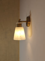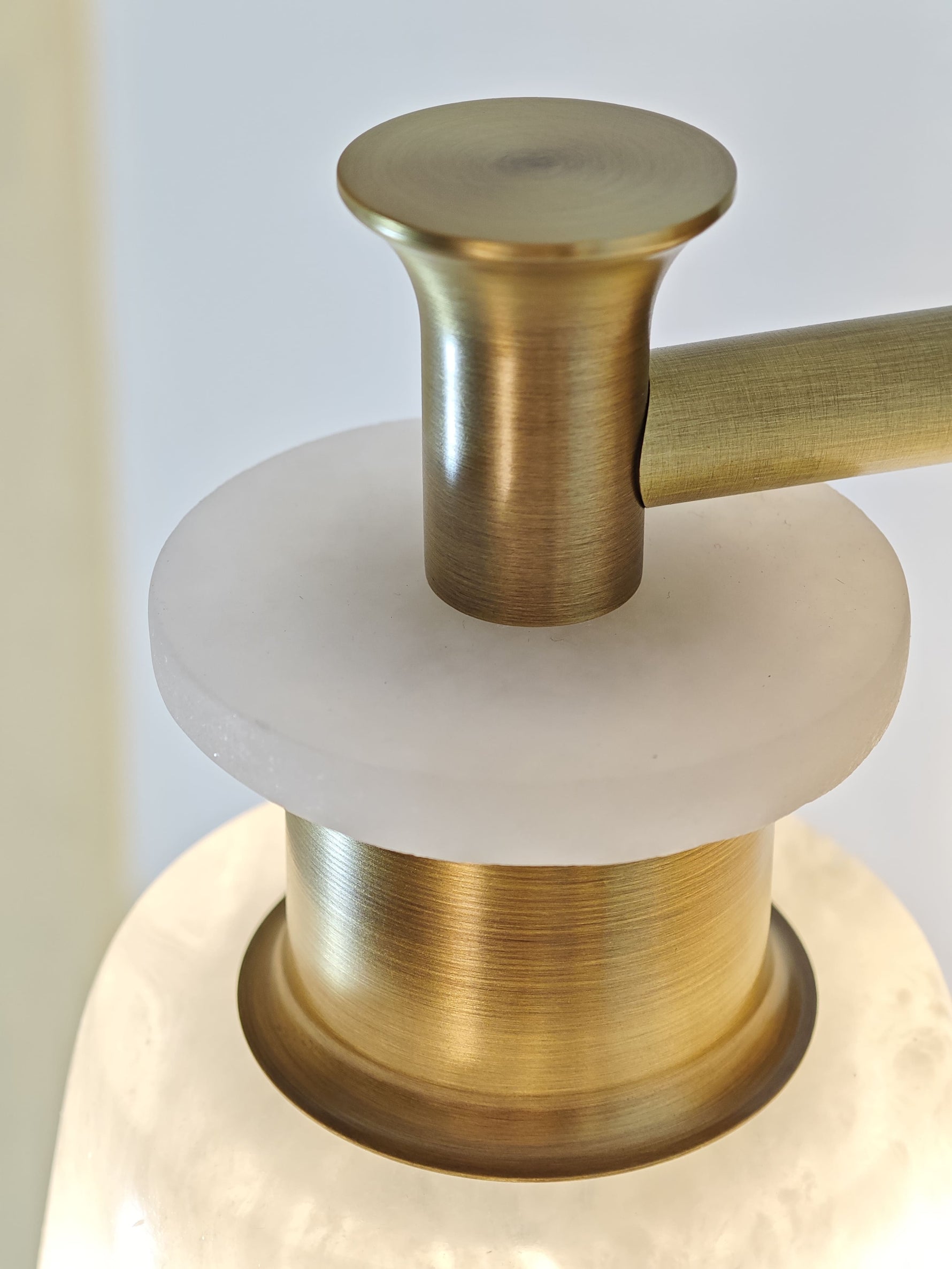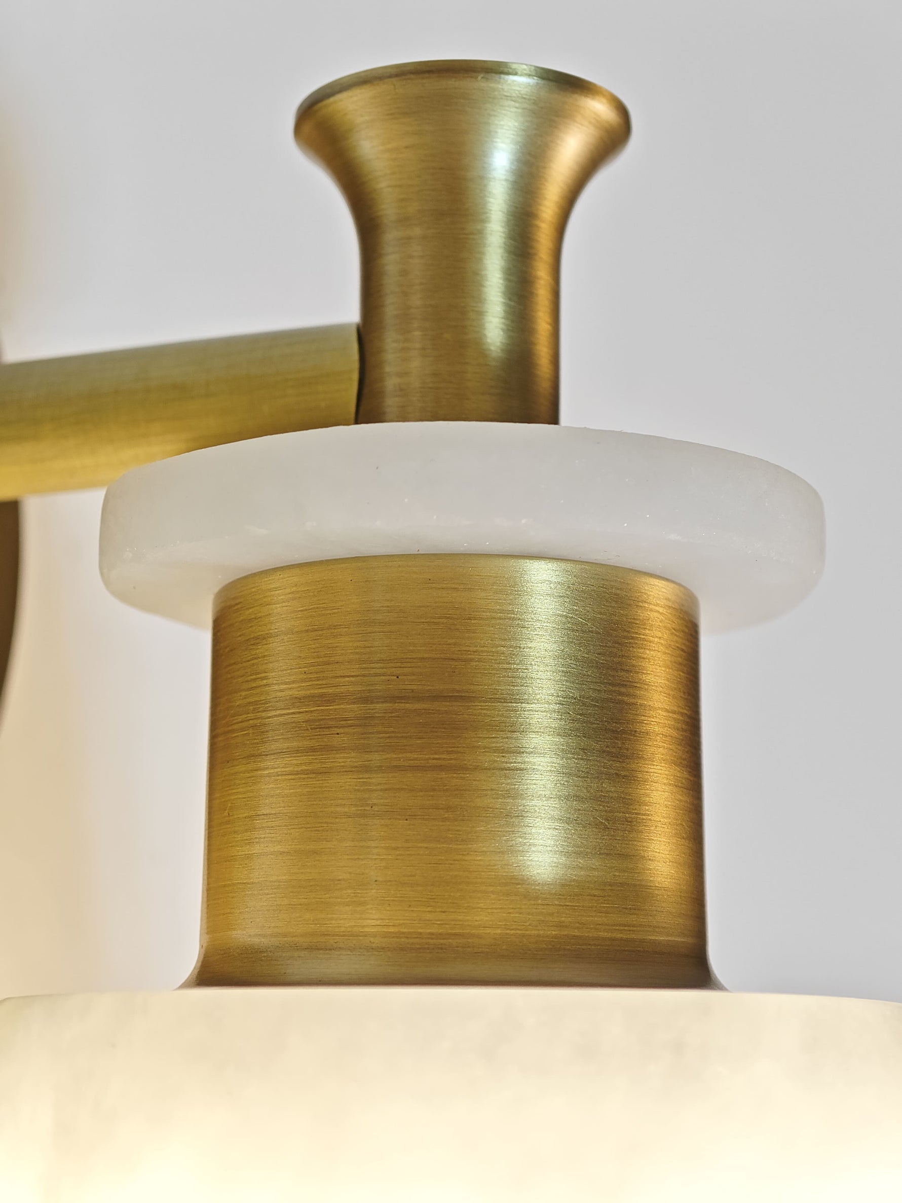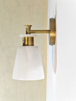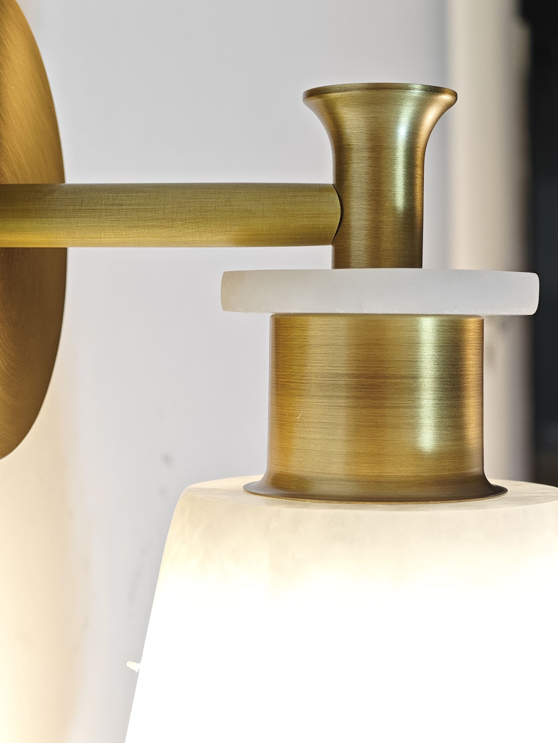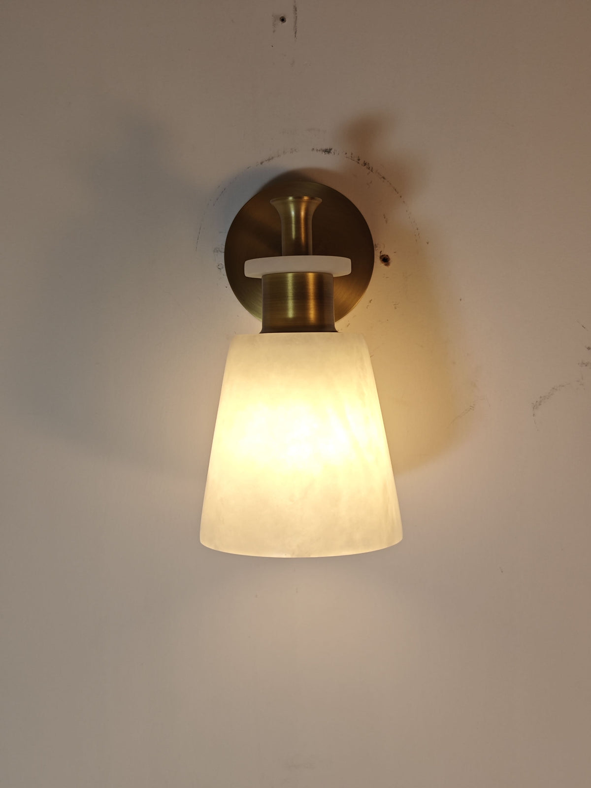- Experience the beauty of natural light with the Polly Alabaster Wall Sconce. The unique tapered alabaster shade, paired with a sleek brass frame, casts a warm, inviting glow. This stunning piece is not just a light fixture; it's a work of art that will elevate your home decor.