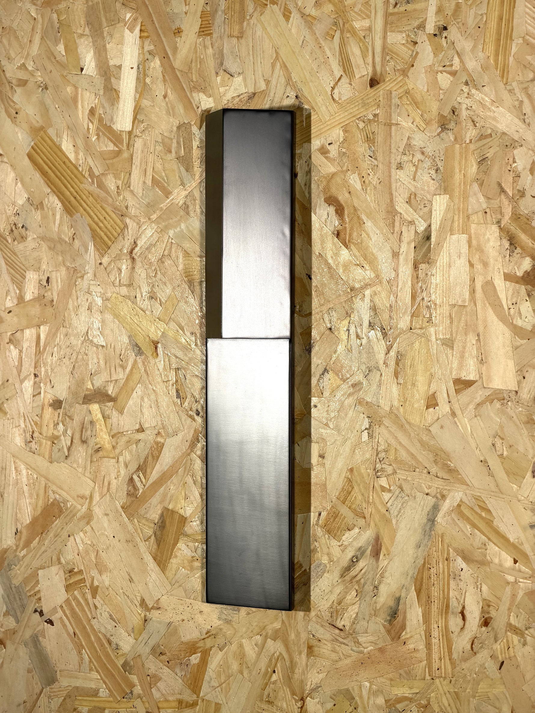 - Its unique form features a slender, rectangular column that appears elegantly "split" into two distinct sections. At its heart, a concealed light source emits a soft, ambient glow, highlighting this beautiful architectural division and creating a captivating play of light and shadow on your wall. The result is a stunning visual hierarchy that adds depth and intrigue to your space.