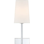 - With its sleek, modern design, the Roy Wall Sconce is the perfect choice for adding a touch of bold refinement to any contemporary space. The sconce features an understated rectangular backplate and bar body, complemented by a simple white shade. This minimalist combination provides a subtle yet attractive lighting solution, ideal for hallways, living rooms, or bedrooms. The Roy Wall Sconce is an elegant and versatile fixture that seamlessly blends into any decor, offering both style and soft, inviting light