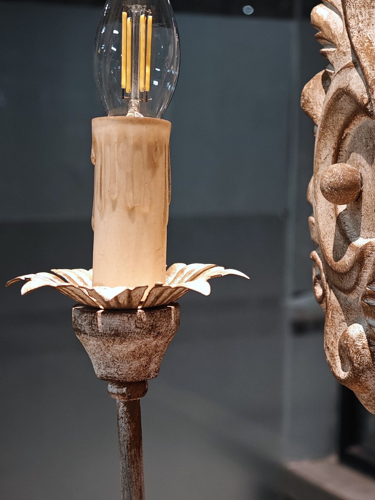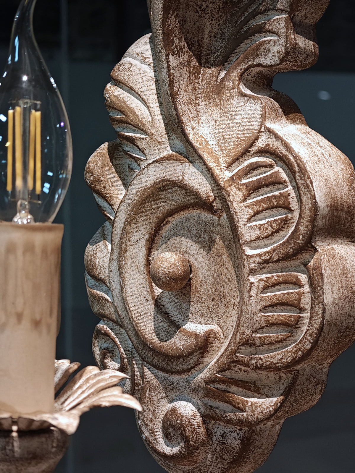• Textured wood lamp body